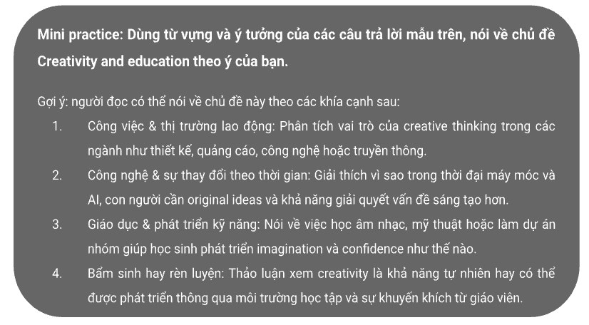 Chủ đề IELTS Speaking Part 3: Creativity and Education.
