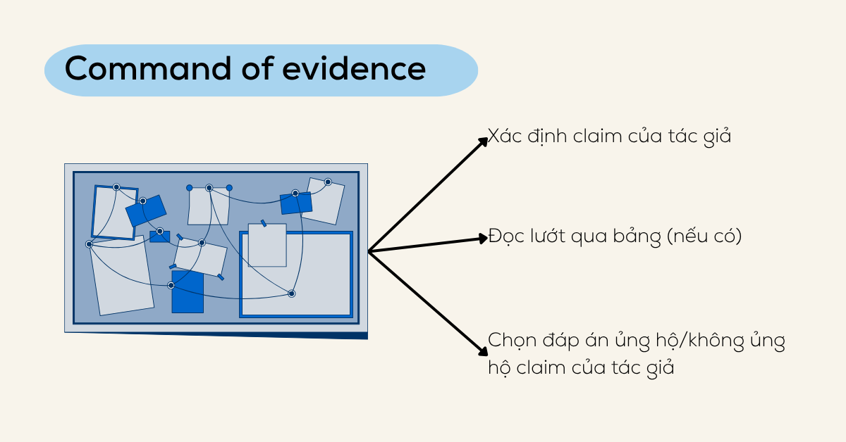 Nhờ cách tiếp cận này, thí sinh vừa rút ngắn đáng kể thời gian đọc, vừa đảm bảo xác định đúng bằng chứng gắn chặt với claim, thay vì bị sa đà vào những chi tiết không liên quan.