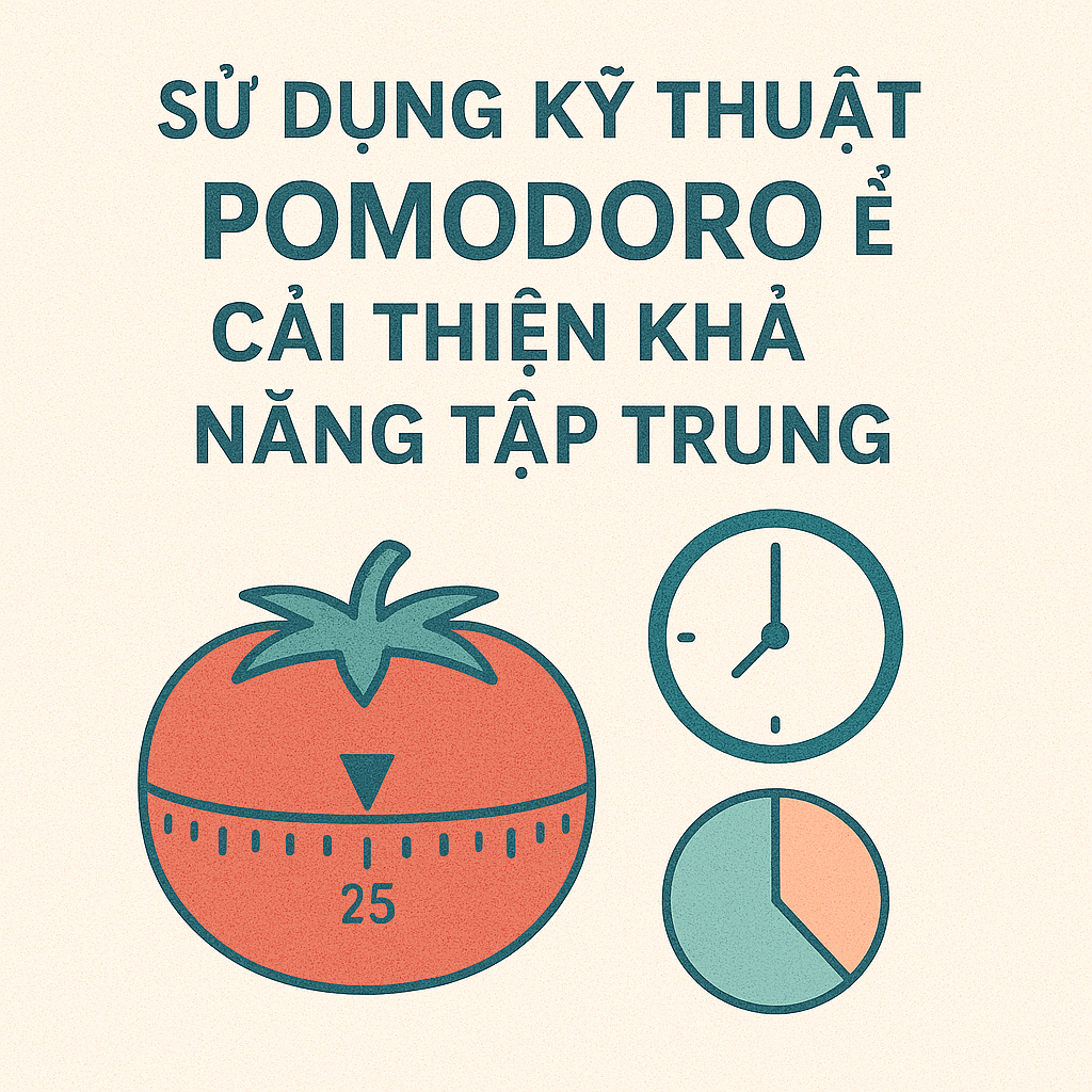 Kỹ thuật Pomodoro là một phương pháp học tập đơn giản nhưng vô cùng hiệu quả, đặc biệt đối với những người gặp khó khăn trong việc duy trì sự chú ý lâu dài. Phương pháp này chia thời gian học thành các khoảng thời gian ngắn, mỗi khoảng kéo dài 25 phút, gọi là một “Pomodoro”, sau đó nghỉ ngơi ngắn từ 5 phút. Sau mỗi 4 Pomodoro, người học có thể nghỉ lâu hơn từ 15-30 phút.